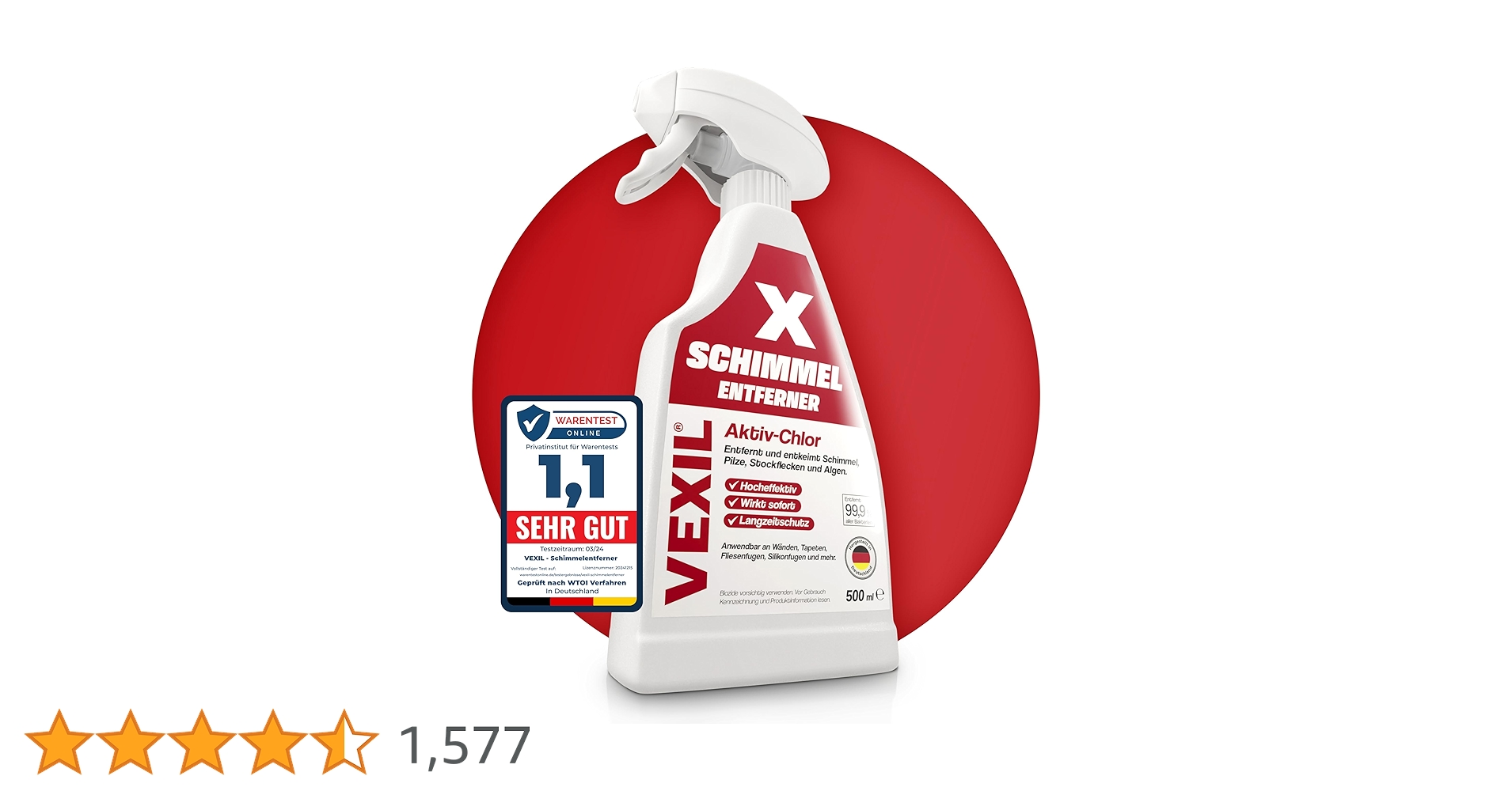 (VEXIL Professional Mould Remover for Wall, Bathroom, Tiles, Grout & More – with Active Chlorine and Adhesive Effect – Extra Strong Mould Spray – Also Suitable as Grout Cleaner – 500 ml )