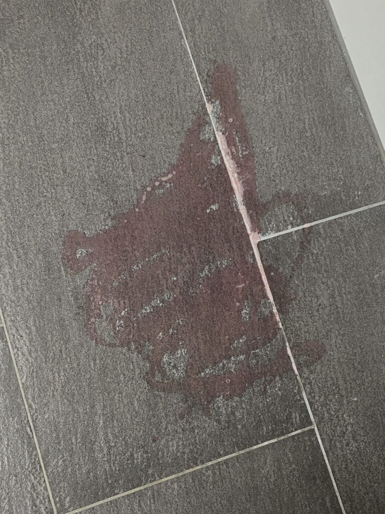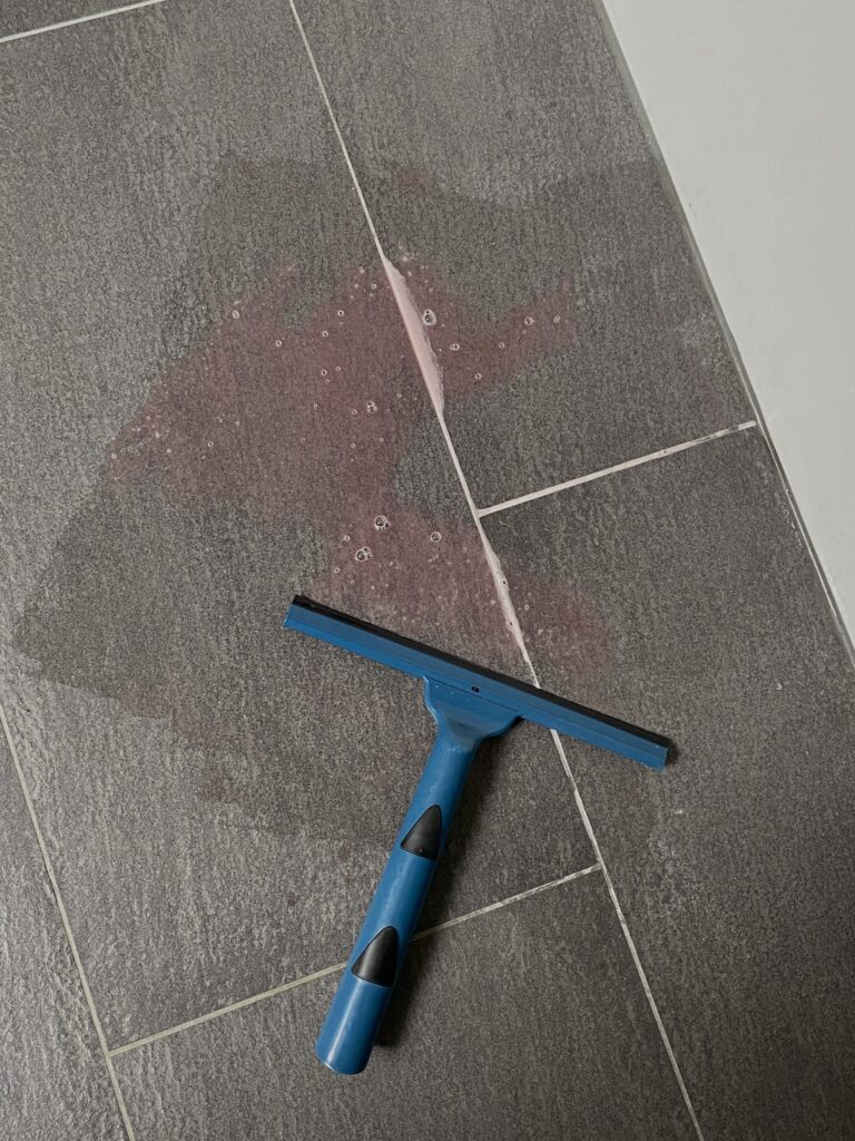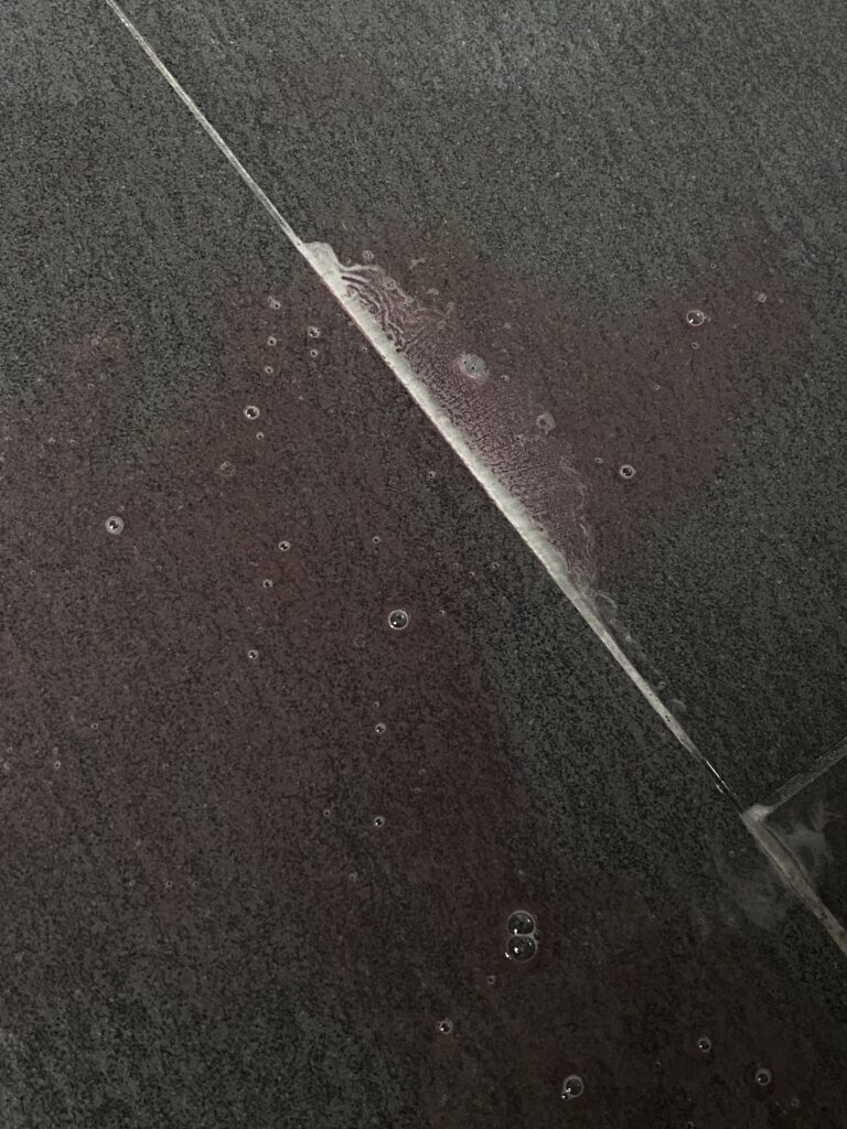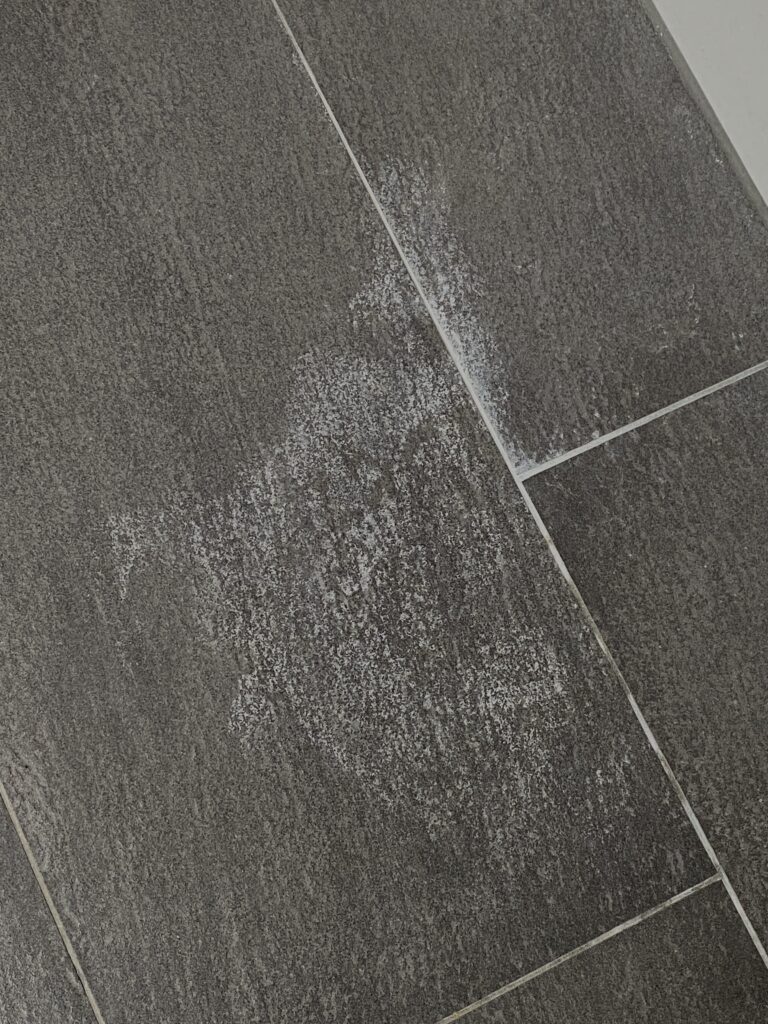 …けど、我が家のシャワールームは床一面と壁の一部に石が使われており、なんとこの「お酢+クエン酸」の液体が逆に新たな汚れを生み出して付着させてしまった。
