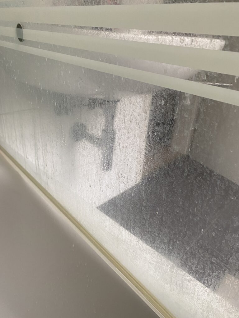 石の床とガラスに付いた水垢のBofore/Afterの写真がこちら↓↓